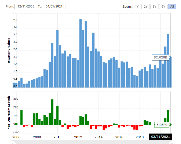 2021년 3월 1분기가 끝나는 시점에 보유현금 = 2.028B = 약 20억달러 = 약 2조원